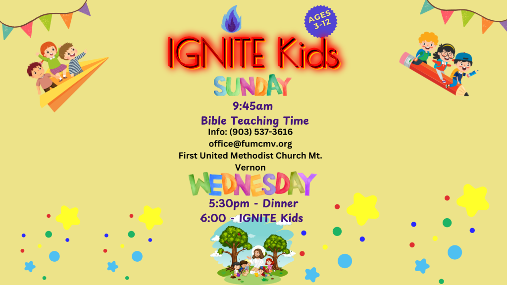 - Mount Vernon First United Methodist Church believes in a strong Youth Program! Through worship, bible studies, missions, food, and fun, we guide your students to have a true relationship with our Savior, authentically live out their faith and Help Others Follow Jesus.