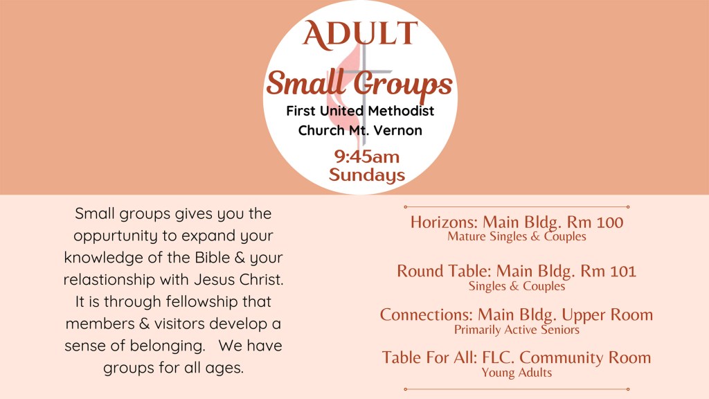 Whether you’re newly engaged or retired with grandchildren, we have a Small Group or Sunday School class for everyone